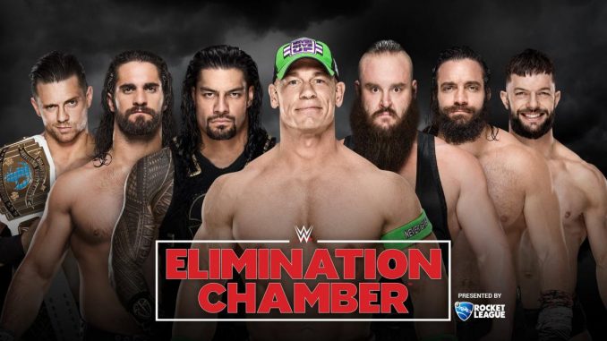ROMAN REIGNS VS JOHN CENA VS THE MIZ VS SETH ROLLINS VS FINN BALOR VS BRAUN STROWMAN VS ELIAS IN THE ELIMINATION CHAMBER MATCH