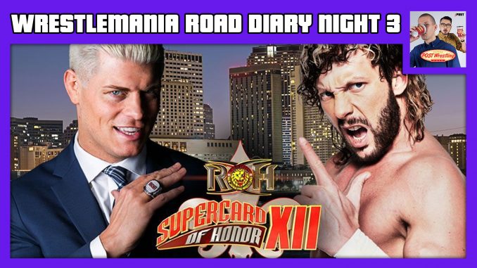 Day 3 of John Pollock and Wai Ting’s WrestleMania 34 road trip in New Orleans is highlighted by a full review of ROH Supercard of Honor XII featuring Kenny Omega vs. Cody. Plus, the day starts off with PROGRESS Chapter 67 featuring a spectacular match between Zack Sabre Jr. and WALTER.