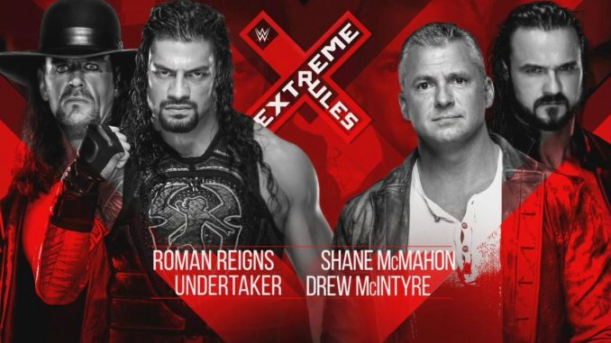 The second match made is a tag match with Roman Reigns & The Undertaker against Drew McIntyre & Shane McMahon. The match was set up when McIntyre & McMahon were double-teaming Reigns during a 2-on-1 match and Undertaker made the save with the lights going out.