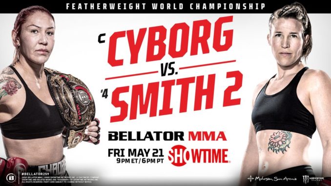 CRIS CYBORG (23-2, 1 NC, 144.6) VS LESLIE SMITH (12-8-1, 143.6) – BELLATOR WOMEN’S FEATHERWEIGHT CHAMPIONSHIP