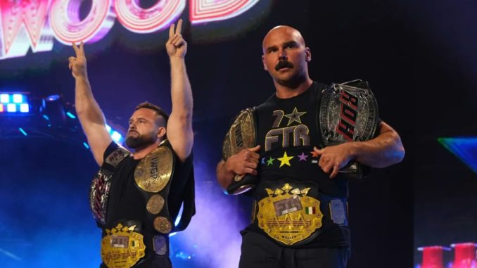 ** FTR (Dax Harwood & Cash Wheeler) guest appeared on ‘The Walkway to Fight Club’ podcast and they were asked when they are going to go after the AEW World Tag Team Titles. Cash Wheeler says they’ve been ranked longer than their actual title reign was. He joked that once they hit the 52-week mark, they’ll challenge for the belts.