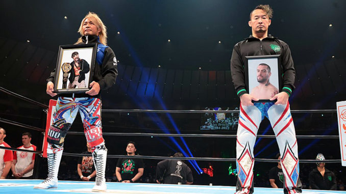 Hiroshi Tanahashi and Naomichi Marufuji stood in the ring holding portraits of Jay during a ten-bell salute. The Briscoes’ Ring of Honor theme ‘Reach for the Sky, Boy’ was then played.