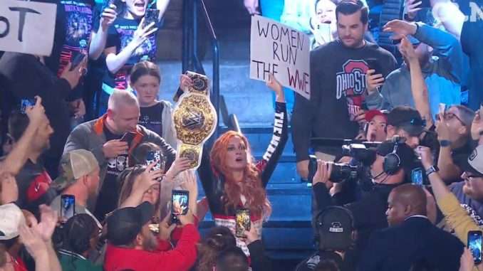 Becky Lynch took the microphone from Redmond and walked toward the stage. As she passed by Maxxine Dupri, she asked if it was her first title fight. Lynch then told her to fight and prove that it won’t be her last.