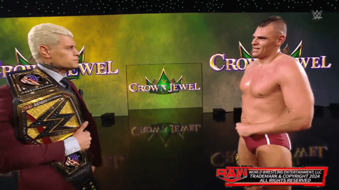 The Crown Jewel logo was thrown up on the main screen and it is official that the two champions will meet at Crown Jewel on November 2nd to determine the first-ever men’s Crown Jewel Champion.