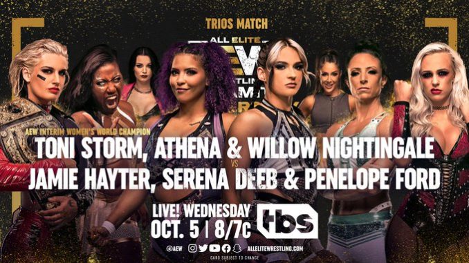 Interim champion Toni Storm will team with Athena and Willow Nightingale to take on Jamie Hayter, Serena Deeb, and Penelope Ford.
