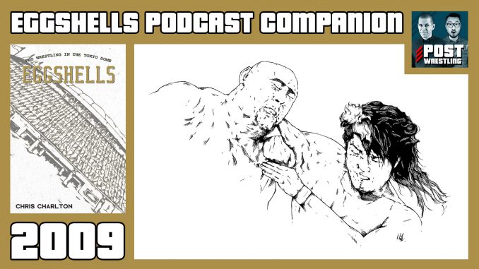 Episode 21 sees Chris Charlton and Joel Abraham look at 2009. NJPW continues a trend of cross promotion in the Tokyo Dome with talents from TNA and NOAH prominent, and Hiroshi Tanahashi headlines opposite Keiji Muto. The podcast is an audio companion to EGGSHELLS: Pro Wrestling in the Tokyo Dome, available now!