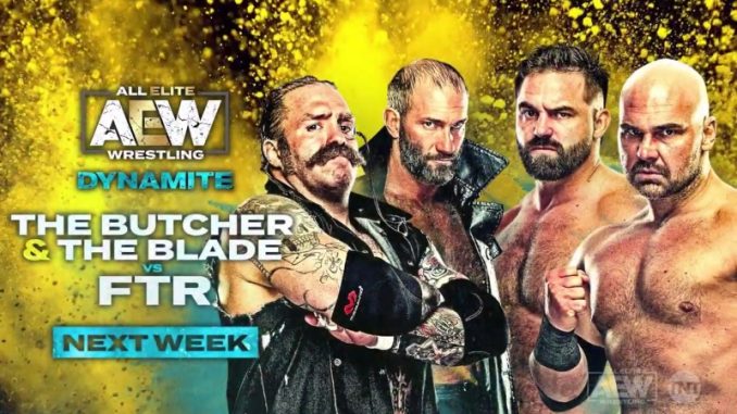 Tonight’s edition of AEW Dynamite on TNT has concluded and coming out of the program, it was announced that next week, FTR (Dax Hardwood & Cash Wheeler) will make their AEW in-ring debut against The Butcher & The Blade. Upon their arrivals in AEW last week, Wheeler and Harwood saved The Young Bucks from a beat down by way of The Butcher & The Blade.
