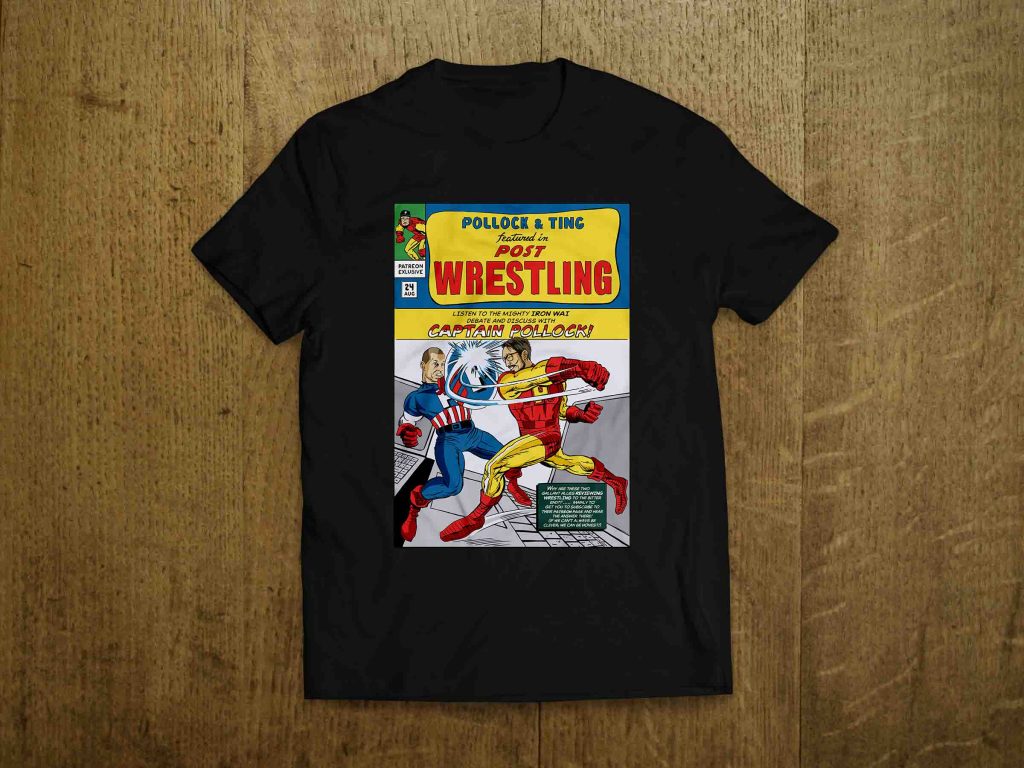To celebrate the conclusion of our MCU reviews, we’re releasing a brand new t-shirt by Robert Pearson (with respects to Jack “King” Kirby) available now at store.postwrestling.com.