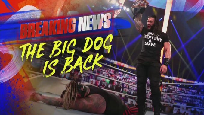 This will be Reigns’ first match since March prior to his sabbatical during the pandemic following the birth of his twins. Reigns appeared on one empty arena edition of SmackDown for a contract signing with Bill Goldberg, before removing himself from the WrestleMania tapings and subsequent shows.