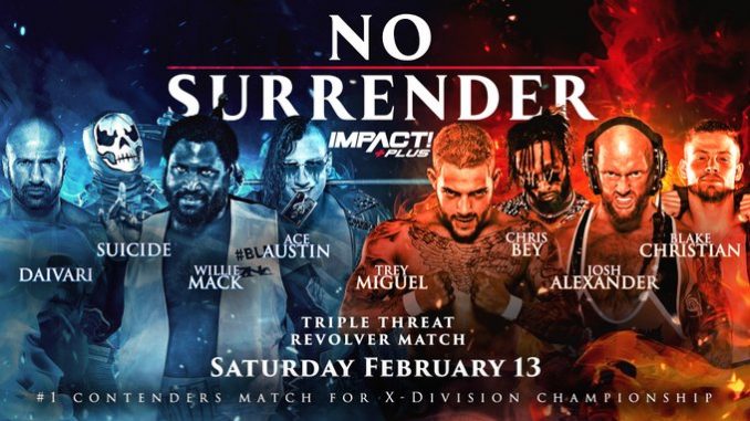 TJP is the current holder of the IMPACT X Division Championship and he will know who his next challenger is come the No Surrender show on February 13th. IMPACT Wrestling announced that a Triple-Threat Revolver match is taking place on the show featuring Shawn Daivari, Suicide, Willie Mack, Ace Austin, Trey Miguel, Chris Bey, Josh Alexander and Blake Christian.