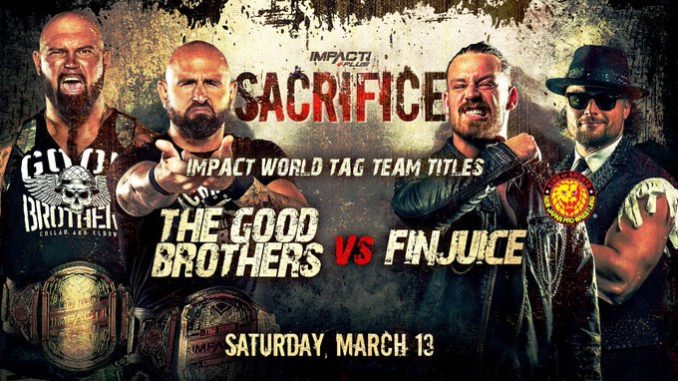 BREAKING: The Good Brothers will defend the IMPACT World Tag Team Titles against @njpwglobal's @THEdavidfinlay and Juice Robinson on Saturday, March 13th at #Sacrifice on @IMPACTPlusApp!
