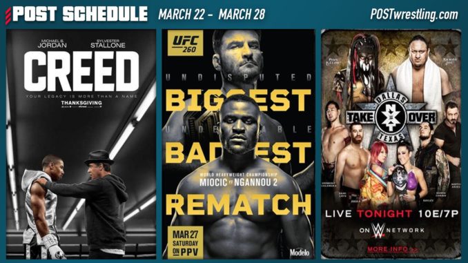 POST SCHEDULE: UFC 260, Creed 1, TakeOver: Dallas, MCU L8R