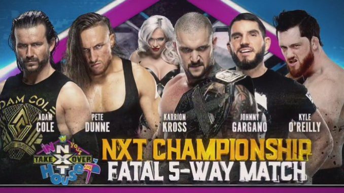 Let us introduce you to the FATAL FIVE. ? @WWEKarrionKross vs. @PeteDunneYxB vs. @JohnnyGargano vs. @KORcombat vs. @AdamColePro for the #NXTTitle at #NXTTakeOver: In Your House on Sunday, June 13 on @peacockTV in the US and @WWENetwork elsewhere! pic.twitter.com/ANXPNaKg0S