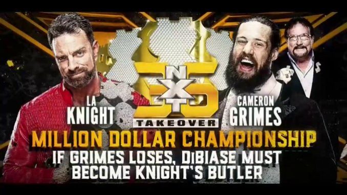 DiBiase encouraged Grimes to remove himself from the situation he is in with L.A. Knight and Knight agreed to give him the opportunity to do so. At TakeOver 36 on August 22nd, Grimes and Knight are competing for the Million Dollar Championship and if Grimes loses, Ted DiBiase will become L.A. Knight’s butler.