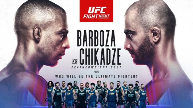 The UFC held their final Fight Night card of August at the Apex Facility in Las Vegas, Nevada. The event was headlined by a bout between two of the featherweight divisions most exciting strikers, Edson Barboza and Giga Chikadze. Chikadze has complied a record of 6-0 since joining the UFC, and he cemented his status as a contender on the rise in his last appearance, where he stopped Cub Swanson in the first round. For Barboza, the long time UFC veteran has injected new life into his career with his move to featherweight, and a win over Chikadze would move him one step closer to championship contention. Also featured on this card were the finals matchups for the 29th season of the Ultimate Fighter, with Bryan Battle facing Gilbert Urbina at middleweight (with Urbina moving into the finals following the withdrawal of expected finalist Tresean Gore), and Ricky Turcios facing Brady Hiestand at bantamweight.