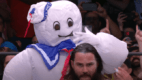 Hey, we were in Europe one time and one of the greatest things is the ribs on the house shows. Those were so freaking good so I’m standing in the ring with Kurt Angle and Big Show’s coming out and Big Show blames me for this but I can’t control the music from the ring so obviously, I had at least an accomplice, probably somebody else that was directing it, which you guys can guess who that was. So he comes out, ‘Hey, it’s Big Show,’ his music is playing. It goes, ‘Hey now, you’re an all-star’ and Kurt Angle looks at me and goes, ‘What is that?’ I go, ‘That’s Shrek’s theme music’ and so, Kurt looks at me and goes, ‘Oh my God, he’s gonna kill us.’ Big Show hears it and he turns red and he starts sprinting to the ring and when he gets to the ring, I say, ‘Kurt, listen, it’s my fault, I did it. I’ll take full responsibility.’ So we’re standing there. As soon as Big Show gets up [into] the ring, I said, ‘I swear to God, Kurt Angle did it. I had nothing to do with it’ and I jetted out of the ring.