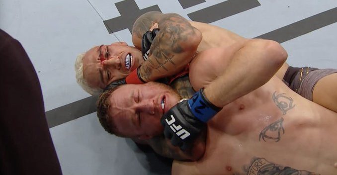 Schnell was fighting aggressively to start this bout, and this resulted in some early success, and he quickly dropped Royval. Schnell followed him to the ground but lost his position after attempting a guillotine, and Royval immediately trapped him in a guillotine of his own, forcing Schnell to tap out with both hands.