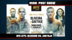 Gaethje began the fight with a series of hard leg kicks, and Oliveira responded with a right hand that wobbled Gaethje. Oliveira followed that up with another right hand that hurt Gaethje, but Gaethje immediately fired back and dropped Oliveira twice in short order. Oliveira seemed to have recovered, but he was bleeding heavily on the left side of his head. This was quickly becoming a wild fight, and Gaethje was really swinging for the fences. Oliveira proceeded to knock Gaethje down with a hard right hand, and Oliveira followed him to the ground, where he took the back of Gaethje. Oliveira quickly locked in a rear-naked choke and Gaethje was forced to tap out.