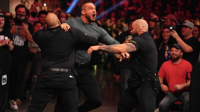 Wardlow is not able to use theme music when he comes to the ring, must be accompanied by security and handcuffed on his way to the ring and after his matches. Wardlow spoke about the ongoing storyline with Josh Martinez on the ‘Superstar Crossover’ podcast.