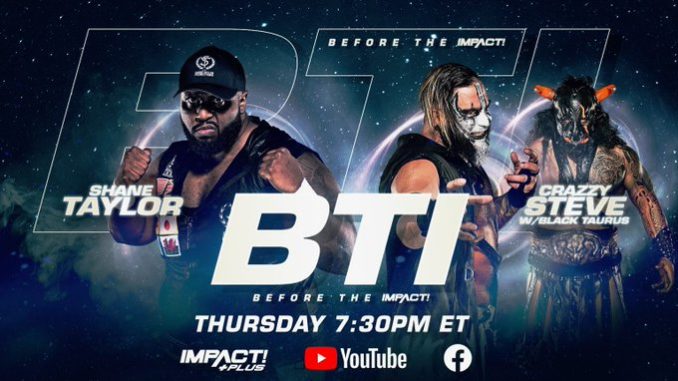 Prior to the September 8th episode of IMPACT Wrestling on AXS, a new edition of ‘Before the IMPACT’ is going to air and it’ll feature Shane Taylor’s debut for the company. He’ll be taking on Crazzy Steve in singles competition.