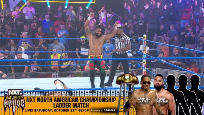 In his first match for NXT in the U.S., Oro Mensah scored a win and secured himself a spot in the Ladder match at Halloween Havoc on 10/22 for the vacant North American Championship. As of this writing, he and Carmelo Hayes are the two participants in the field.