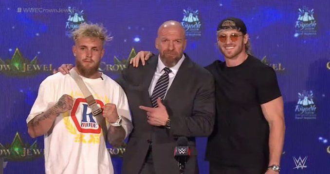 At Friday’s press conference in Riyadh, the Paul brothers were in attendance to offset Roman Reigns, who had The Usos and Paul Heyman at his side.