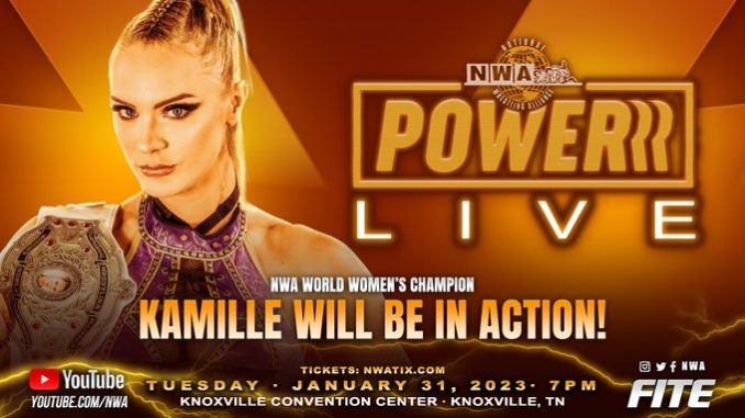 ? Just Announced! NWA World Women's Champion Kamille WILL be in action at the LIVE #NWAPowerrr on Jan. 31st in Knoxville, TN!
