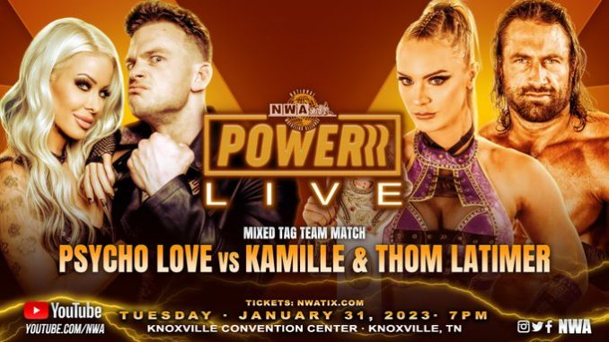 Announced tonight on the #NWAExtra Livestream, the debuting PSYCHO LOVE team of @ActualALove & @LoKeys910 will be in action against the original Powerrr Couple @Kamille_brick & @Thomas_Latimer_ !