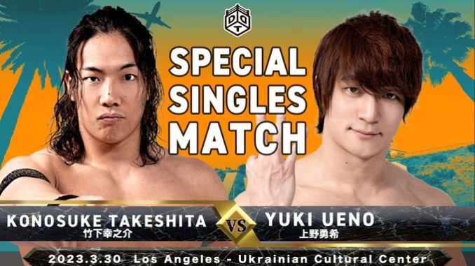 Former five-time KO-D Openweight Champion Konosuke Takeshita will wrestle for his former promotion when he takes on Yuki Ueno on Thursday, March 30th as part of The Collective series of shows.