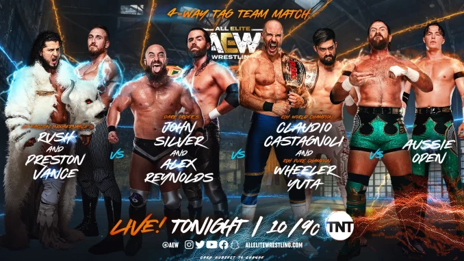 Rampage kicked off live with the four-way tag team match between Aussie Open, Blackpool Combat Club, Dark Order, and Top Flight. Dark Order jumped Claudio and Yuta to kick off the match. Ringside was The Kingdom members Maria Kannelis-Bennett, Mike Bennett, and Matt Taven. Then during the match, LFI was shown watching with intent as well. John Silver then executed a WWE Cesaro-style run: