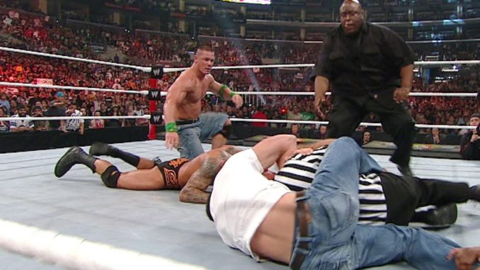 So, I will never forget, I was not expecting it (to be part of Randy Orton vs. John Cena at SummerSlam 2009). I got a call from Johnny Ace and this is what sucked about it was it was wonderful but it was like, ‘Hey Brett. This is Johnny.’ He’s like, ‘Look, so here’s the deal, you’re gonna be part of John Cena versus Randy Orton’s match at SummerSlam’ and I’m like, ‘… Okay.’ He’s like, ‘But here’s the deal, you can’t tell a soul. If you tell anybody, you’re fired.’ I’m like, well sh*t. I’m about to be in John Cena and Randy Orton’s match and I can’t tell nobody? Not even my dad? Come on and so, I’m like, ‘Okay.’ He’s like, ‘We’re gonna fly you in. We’re putting you up in a separate hotel completely away from all the boys’ so I’m like, ‘Alright.’ So he goes, ‘See you at the show.’ So I get my itinerary, fly, limo picks me up, takes me to the hotel. My first big moment, right? And I’m in a freaking hotel by myself and I didn’t even get to hang out. I’m getting room service because I was told not to leave my room, I can’t go anywhere and I’m stuck in my head going what the hell am I gonna do? So Ty (Bailey), limo shows up next day, they put me in the limo, we’re going to the building and they start covering me up with a black sheet and I’m like, Jesus… Am I about to win or something? This is crazy, and they take me, put me on a golf cart and here’s where the story gets fun. I got all my luggage, right? I’m terrified already because I mean, I don’t know what to do, I feel like I’m not really organized. They put me on this thing, they go through the hallway. How the son b*tch can see? I don’t know, driving with a black sheet over us and they get me in this little room and they go to the door and Ty says, ‘Hey, just stand in here.’ So he opens the door and in this little, bitty room, you got Vince McMahon, John Cena, Undertaker, J.R., Arn Anderson and I wanna say, maybe, I can’t remember, only one or two more and I walk in, I’ve got all my bags and I’m like, great. I get up against the wall and I’m like, ‘Hey guys. How y’all doing?’ They all looked at me. Not one person said hello back and I’m like, alright, okay. So then I’m just standing there and then Cena gets up after he’s done talking, he walks by and I’ll never forget, he taps me on the shoulder, he goes, ‘Hey kid, congratulations.’ He said, ‘Hey man, I’m so glad you’re gonna get to be a part of my match tonight.’ He said, ‘Don’t f*ck this up or you’ll never work for the company again. Good luck’ and walked out, and I’m like, okay. So then… You gotta understand, Arn and my dad were real close. Arn knew me as a baby. He gave me this name ‘butt kiss’ for some reason. I don’t even really remember why but that’s what Arn called me. He’s like, ‘Hey, butt kiss, come on out here. I’m gonna tell you what you’re doing.’ He said, ‘So here’s the deal, John’s gonna put Randy in a submission. When Randy almost gets to the rope, when Cena lets go and pulls him back, whenever he starts pulling back, that’s when you jump the rail and you come in and jump on Scott’ and he said, ‘That’s all you’re gonna do’ and walked away and I’m like, because you know, I’m thinking can you just tell me one more time maybe? Just once, make sure I got it, right? Told me one time, I’m in street clothes. So, crazier part of the story, this is real life now. I’m out there. They take me, plant me ringside. So that night, I don’t know if y’all remember, Teddy (DiBiase Jr.) and Cody (Rhodes) were wrestling Shawn (Michaels) and Hunter in the match before Cena and Randy so Teddy doesn’t know I’m here and of all things, they’re on the side I’m sitting on and Hunter throws Teddy into the barricade, he comes over and lands right between my legs… He starts coming up and he looks up and he’s like, ‘What the hell are you doing?’ I said, ‘Don’t look at me! Don’t look at me!…’ I’m probably being way more obvious, and then he’s back in the match probably the whole (time) going, what is my brother — I’m confused. So finally Cena comes out. I’ll never forget, Cena gets in the ring, he’s in the corner and he’s got his arms like this (stretched out) and he looks at me and all he did, he just gives me a head nod and my heart’s (pumping). That was a big one, that was in Vegas and so then Orton comes out, we do the deal and I remember I hit the ring, jumped on Scott (Armstrong). Scott was like, ‘Man, you’re the lightest dude I ever worked!’ He’s like, ‘DiBiase, man, it looked so real’ and he’s like, ‘I wanna wrestle that son of b*tch live on TV’ and so they pulled me out, take me to the back and of course when I get to the back, I remember R-Truth was one of them, there was a couple guys standing there ready to just whip me… And of course Johnny’s just like, ‘Wait! Wait! Wait! It’s just Brett! It’s just Brett, it’s just DiBiase.’ I’m like, oh my God and dude, that was a shoot. When they got me, they hooked both my hands and grabbed my ankles… I remember my head going ‘boom!’ And hitting off the mat. I was like, geez, lighten up, right? It’s a work. But I had to be a fan and so, the only way — I started getting text messages from some of my buddies and the guys back in Florida. They’re like, ‘You know, the only way we knew it was you was those damn ostrich-skin cowboy boots’ and that’s how they knew and they did. They were like, ‘That’s Brett. That’s Brett for sure’ because of the boots and then the next night was on Monday Night Raw and then I went back down to do those few hours of TV with Joe and that’s when I blew the first knee out and they were gonna call me up. There was some deal one time where they were gonna maybe put me with Shawn and Hunter… Wish that would have happened for sure, you know?