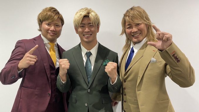 Left to right: Kento Miyahara, Kaito Kiyomiya & Hiroshi Tanahashi (Photo courtesy of NJPW, AJPW & Pro Wrestling NOAH)