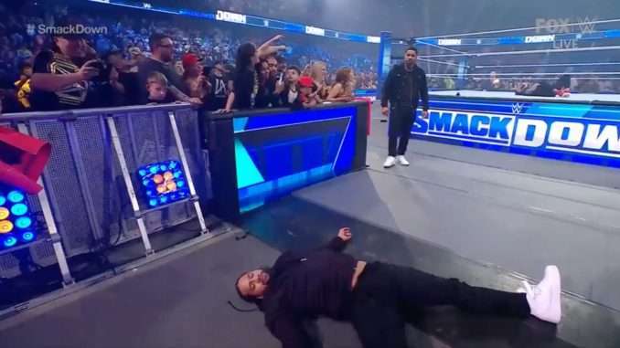 Reigns then butted in laughing and said “I told you so” and with that, Jey superkicked Reigns. A brawl ensued with Jey managing to get the upper hand. Jey then beckoned for Jimmy to come to him with his arms outstretched to which Jimmy obliged only to have Jey superkick him just before the hug. Jey screamed at the camera that he was out of The Bloodline, he was out of SmackDown and he was out of WWE.