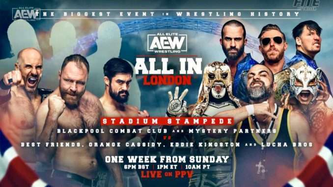 As the BCC’s Yuta, Jon Moxley, and Claudio Castagnoli made their escape, Kingston challenged them and “anyone they can find” to a Stadium Stampede match for All In at Wembley Stadium, London. The match was later made official.