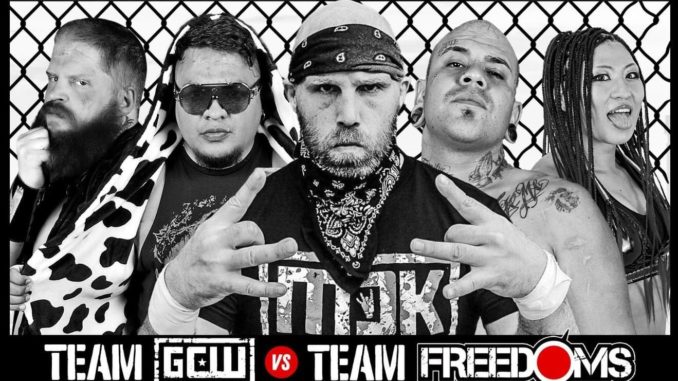 Art of War Games Match: Team GCW (GCW Ultraviolent Champion RIna Yamashita, NIck Gage, Ciclope, Miedo Extremo, and John Wayne Murdoch). Vs. Team FREEDOMS (Jun Kasai, Masashi Takeda, Takashi Sasaki, Toru Sugiura, Violento Jack)