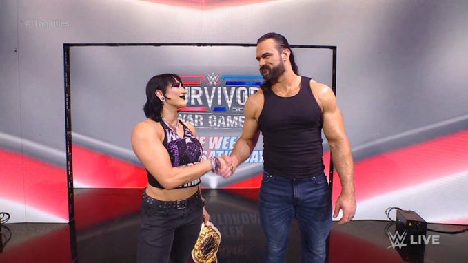 Headlining the November 13th edition of Monday Night Raw from Washington D.C. was Cody Rhodes and Jey Uso challenging Judgment Day’s Finn Bálor and Damian Priest for the Undisputed WWE Tag Team Championships. While Uso was on the outside of the ring, Drew McIntyre appeared and gave him a Claymore Kick which cost Uso and Rhodes the title bout. As McIntyre was standing atop of the entrance way, he was joined by WWE Women’s World Champion Rhea Ripley and they shook hands.