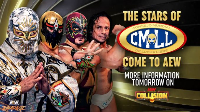 Excalibur announced that stars of CMLL will coming to AEW including Místico, Máscara Dorada, Hechicero, and Volador Junior and we will be “taking a look at them all” on Collision tomorrow night.
