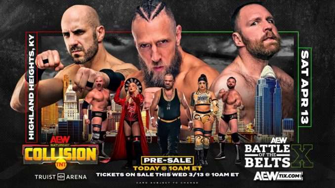The promotion has announced Battle of the Belts X for April 13th at the Truist Arena in Highland Heights, Kentucky, USA. The show will take place following an episode of AEW’s weekly TV show Collision.