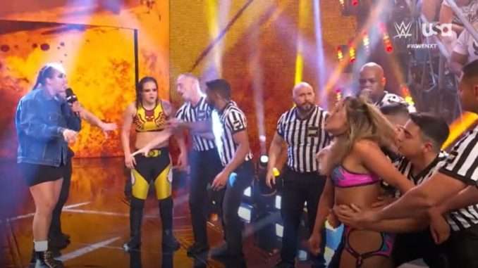 Referees made their way to the ring to stop Baszler from choking Vice. They began brawling on the outside of the ring and entering the frame was General Manager Ava.