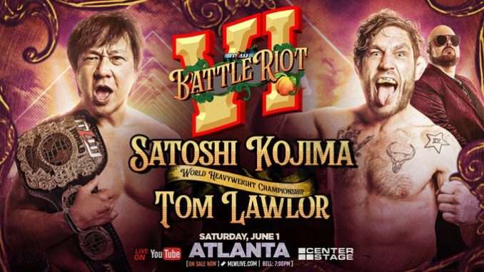 MLW today announced an MLW World Heavyweight Championship title fight: Satoshi Kojima (champion) vs. “Filthy” Tom Lawlor (managed by Saint Laurent) for MLW: Battle RIOT VI on Saturday, June 1 at Center Stage in Atlanta, GA and presented live on YouTube.