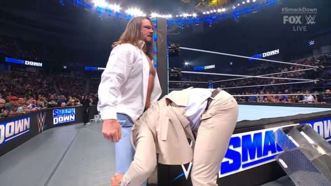 An interesting and intense promo between Kevin Owens and Paul Heyman, advancing The Bloodline story was the most intriguing (and longest) part of the show tonight with it running directly into a pretty decent tag team match. While there was some intrigue from the tease of AJ Styles’ retirement, the inevitable turn and beatdown by AJ was predictable yet well-executed. Mark Henry must have clutched his salmon-colored suit watching this. Wrestling-wise, the best match of the show was the ensuing tag match between The Street Profits and The Bloodline.