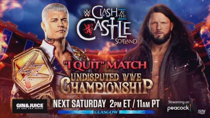It was revealed on Friday’s episode of Smackdown that WWE Champion Rhodes will face Styles at the promotion’s Clash At The Castle PLE on June 15 in Scotland. The bout will take place under “I Quit” rules, meaning the fight is no disqualification and can only come to an end after one of the wrestlers verbally submits.