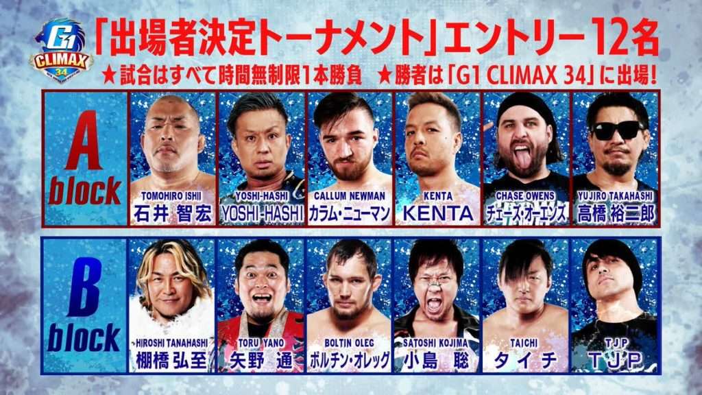 The two vacant spots will be filled via “play-in” mini-tournaments that begin on June 22nd. The play-ins will take place throughout the NJPW Soul tour, culminating on July 5th when the final two spots will be filled.