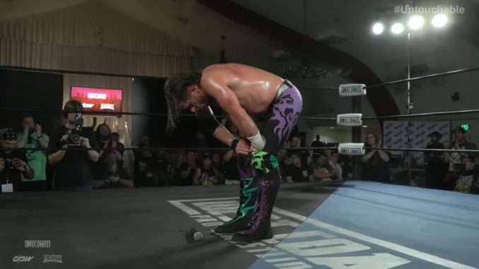 Shelley had just wrestled the opening match of the ‘Untouchable’ show, co-promoted by West Coast Pro, Prestige, and Deadlock Pro.