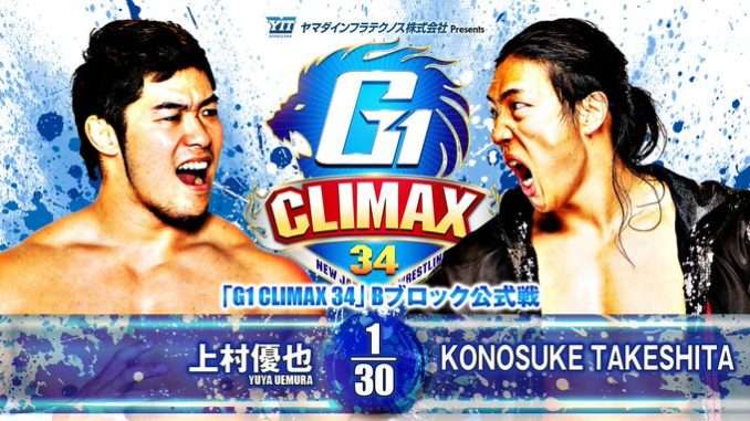 The 7/25 NJPW G1 Climax show spotlighted the B block. All five tournament matches were from that block and the main event saw Yuya Uemura versus Konosuke Takeshita.