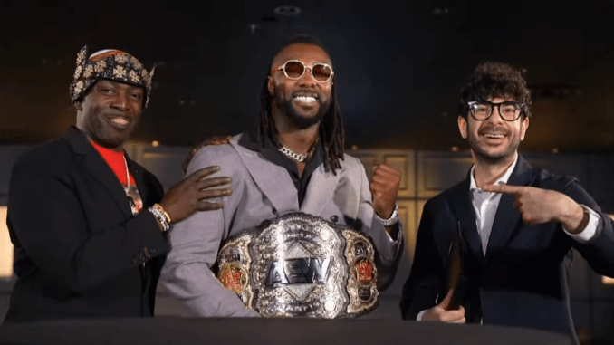 Khan spoke about the great day that AEW is set to embark on and added that it is a great day for his family. He then handed over a contract to Strickland and the World Champion put pen to paper.