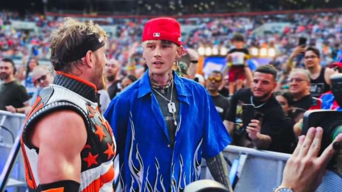 The 2024 installment of WWE SummerSlam emanated from the Cleveland Browns Stadium in Cleveland, Ohio. Ohio’s own Logan Paul went into the show to defend the United States Title against L.A. Knight. Paul was accompanied to the ring by Grammy-nominated music artist and fellow Ohio native, M.G.K. (Machine Gun Kelly).