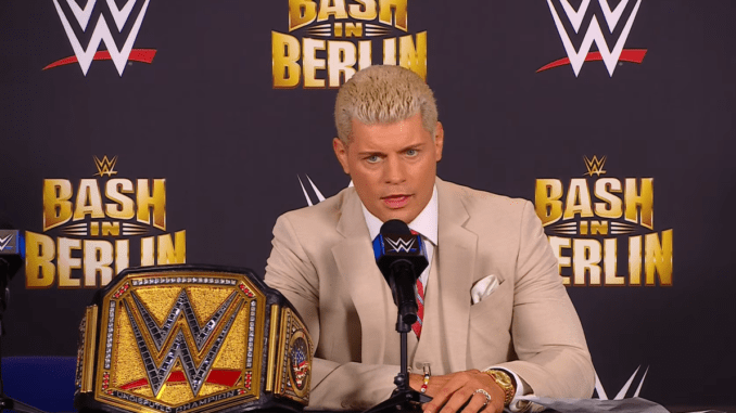 Starting off the WWE Bash in Berlin press conference was Undisputed WWE Champion Cody Rhodes. Along the way, Rhodes was asked about the docuseries that Netflix is releasing about Vince McMahon on September 25th. That was followed up on by Rhodes being asked about Janel Grant’s sex trafficking lawsuit against McMahon.