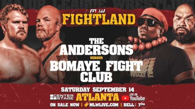 The stage is set for a monumental clash at MLW FIGHTLAND on September 14 as The Andersons (Brock & CW Anderson) take on the Bomaye Fight Club’s Alex Kane and Mr. Thomas. This high-stakes tag team showdown will stream live and free on YouTube from Center Stage in Atlanta, bringing together two of the most dangerous duos in wrestling today.