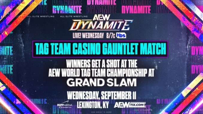 On the September 11th Dynamite, there is going to be Tag Team Casino Gauntlet. The winners will challenge The Young Bucks for the AEW World Tag Team Titles at Grand Slam.